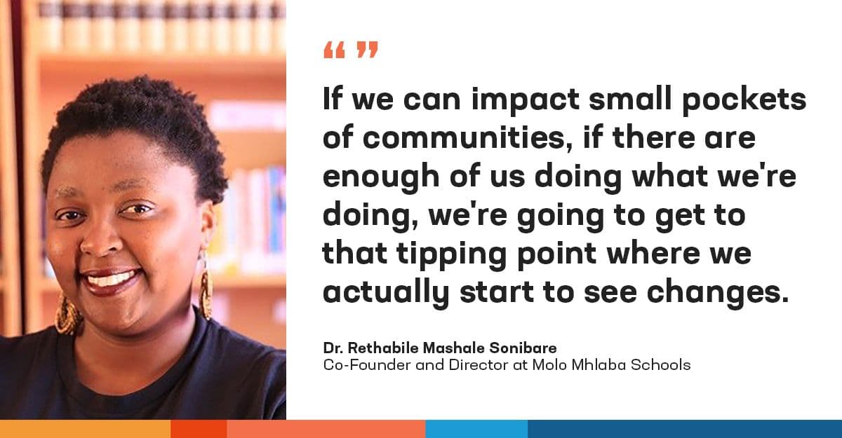 Dr. Rethabile Mashale Sonibare is the co-founder and Director of Molo Mhlaba Schools, a pioneering non-profit organization providing STEAM education to young girls in Khayelitsha, South Africa.