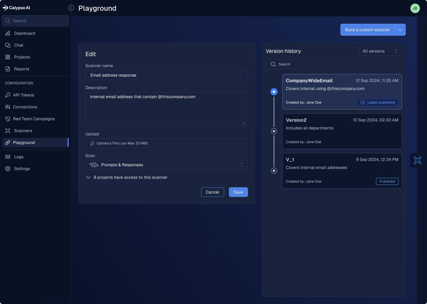 Another major use case is adapting to regulatory and policy changes. Enterprises today face a constantly shifting compliance landscape, from data privacy regulations to emerging AI-specific rules like the EU AI Act. Custom Scanner Versioning allows organizations to roll out new detection logic or policy-aligned scanners quickly and methodically. Teams can deploy updated versions to select projects or environments, validate performance, and then scale them across the enterprise, enabling compliance without slowing down innovation.