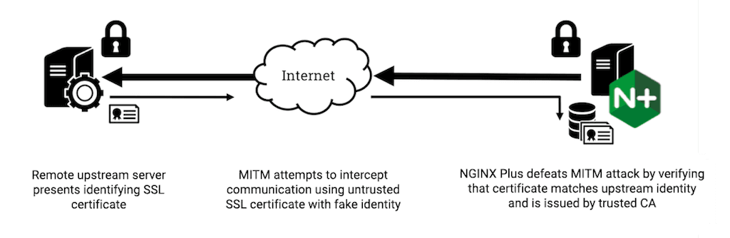 End-to-end security is a key concern, particularly if you’re building an application that spans more than one location. If your internal traffic goes across the open Internet (or even within a public cloud), basic SSL alone is not sufficient to protect against trivial man‑in‑the‑middle (MITM) attacks. This release (with thanks to CloudFlare) adds certificate verification for upstream servers, so you can be confident that NGINX Plus is talking to the server it’s intending to. It also adds SNI support for upstreams to help scale out complex upstream services securely.