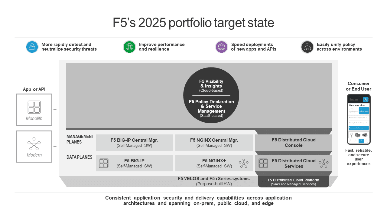 Our customers, along with investors, analysts, and others, have watched us acquire companies like NGINX, Shape, Volterra, and Threat Stack over the past three years. I know from spending time with our stakeholders that they are very curious about how we’ll bring these assets together with BIG-IP to help customers achieve their target business outcomes—so I’m proud to share how we plan to do just that by presenting F5’s tech stack for adaptive apps and our 2025 portfolio target state.