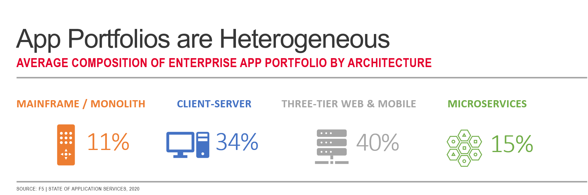 And I do mean speeding. The enterprise app portfolio on average now comprises 15% modern, microservices-based applications. That's now more than the stalwart 11% of monolithic / mainframe-hosted applications. Considering reports of extreme backlogs for new applications in every industry, that modern apps have consumed such a significant percentage of the corporate portfolio is nothing short of impressive.