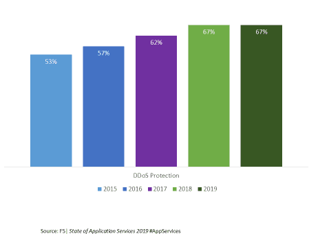 • DDoS Protection deployments are up to 67% from 53% in 2015