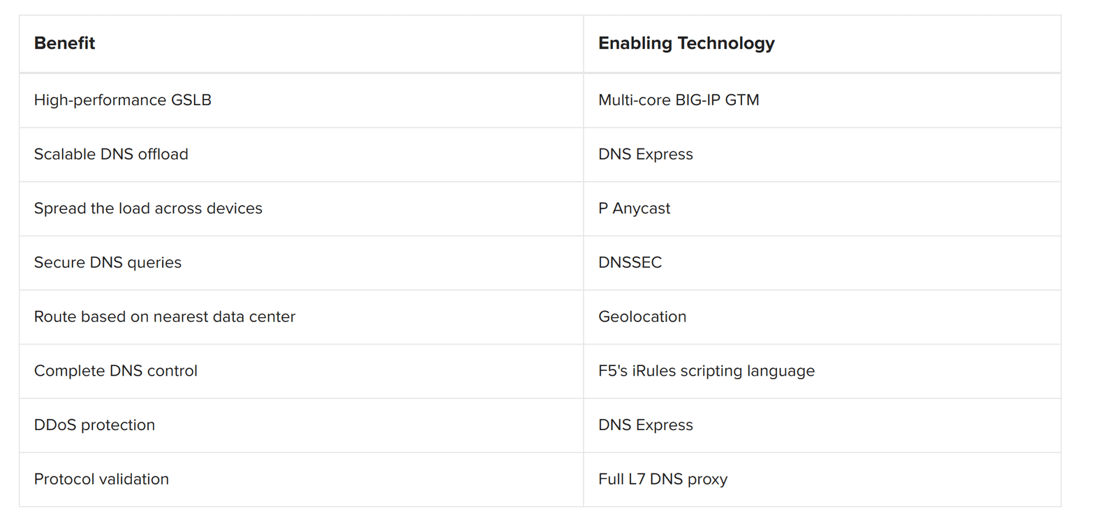 For global organizations with multiple data centers and an existing DNS infrastructure, BIG-IP GTM provides a range of services, from global server load balancing (GSLB) to full zone service with F5's unique DNS Express technology. DNSSEC signing ensures that clients aren't getting maliciously redirected.